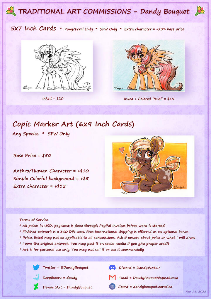 NOTICE: I very rarely open for commissions, please check my Twitter @DandyBouquet to see if I am currently open and to follow for future commission announcements.